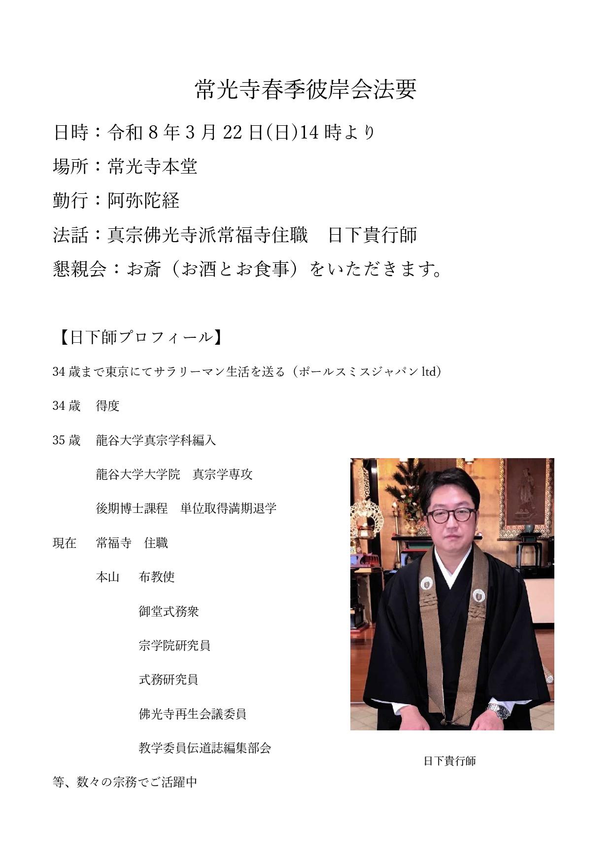 常光寺は、この東三国の地で地域の皆様に寄り添い、皆様が心豊かに暮らしていくお手伝いをしたいと願っています。
